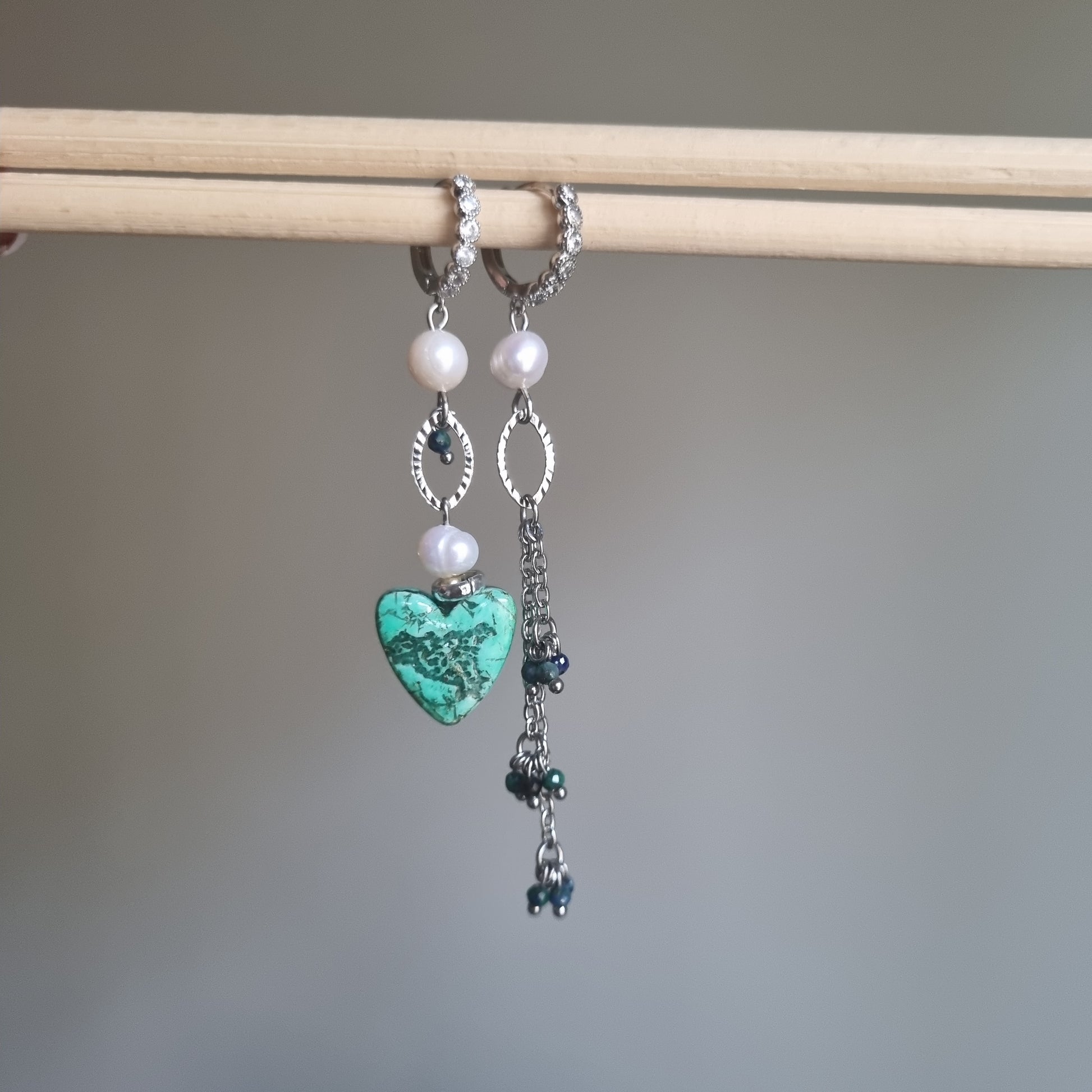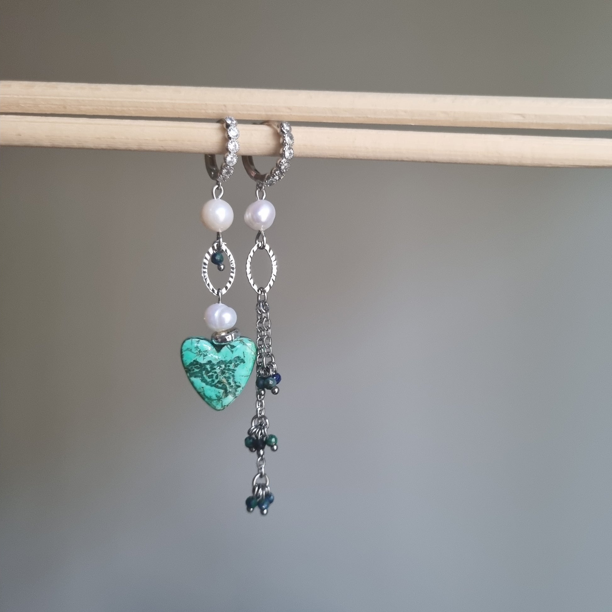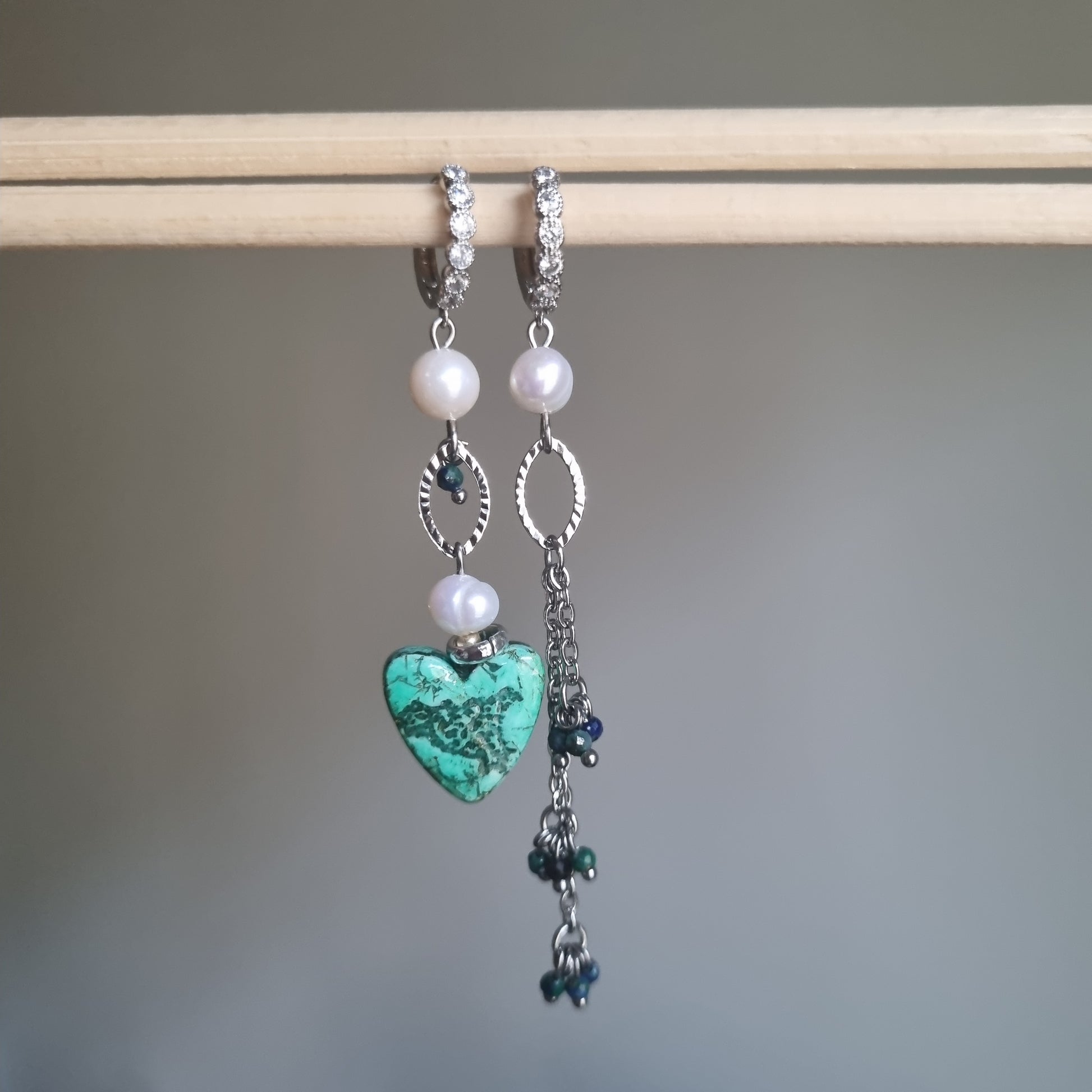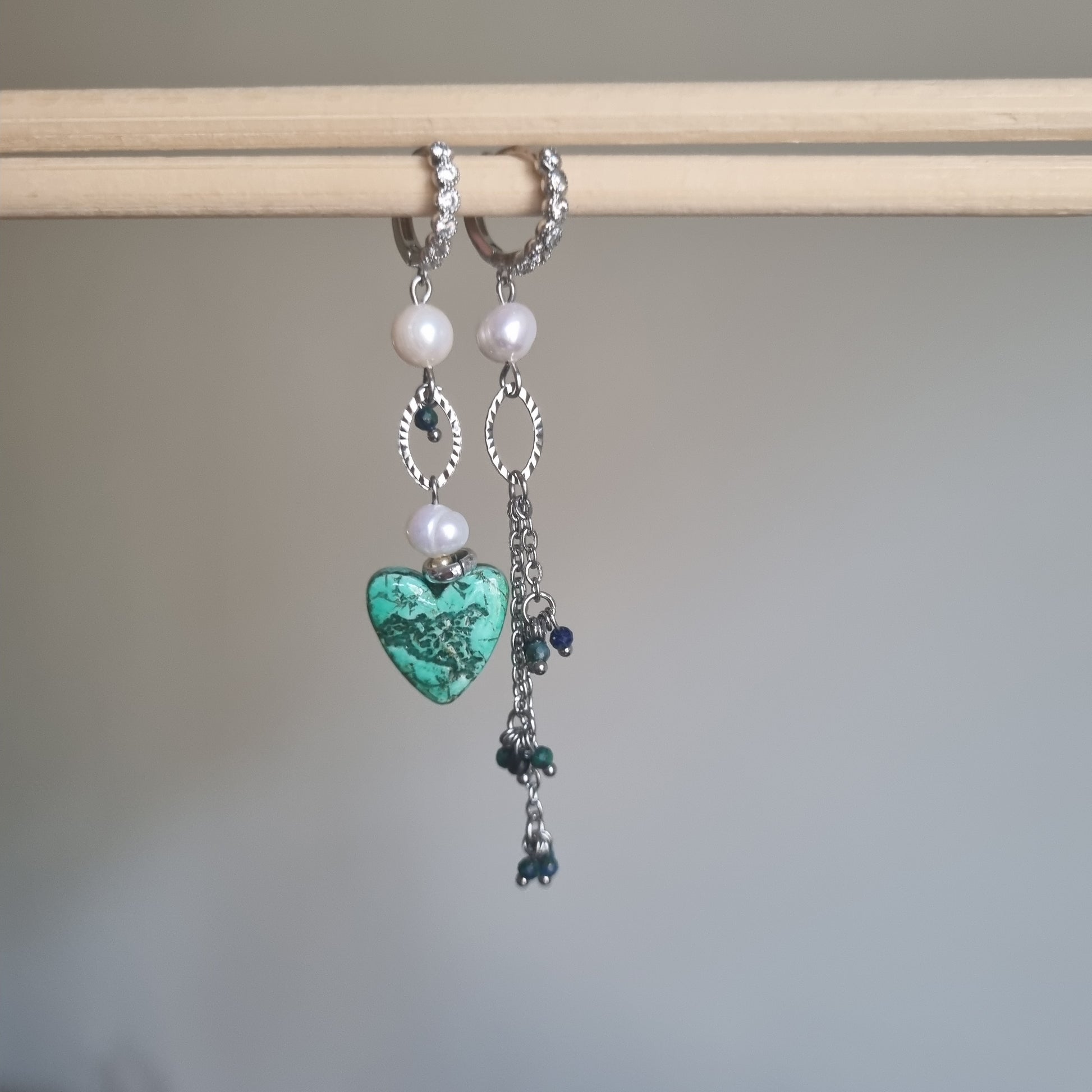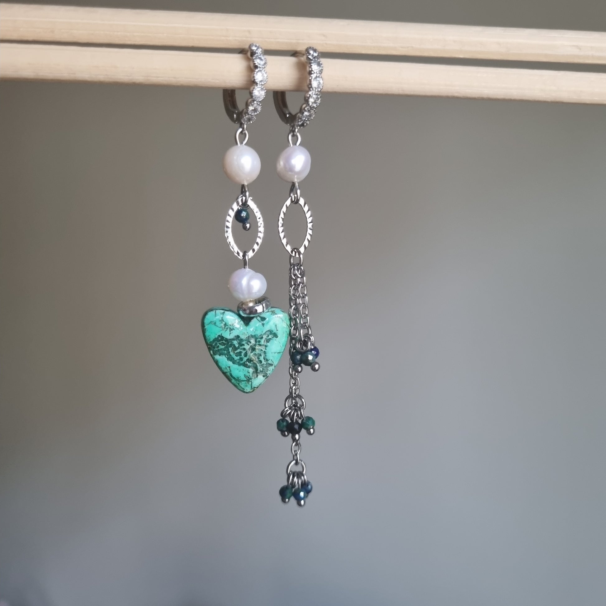 Stile e versatilità: Questi orecchini statement sono perfetti per chi ama distinguersi con eleganza. Il contrasto tra il verde turchese vibrante e le perle luminose crea un equilibrio armonioso, ideale sia per occasioni speciali che per impreziosire il look quotidiano.
