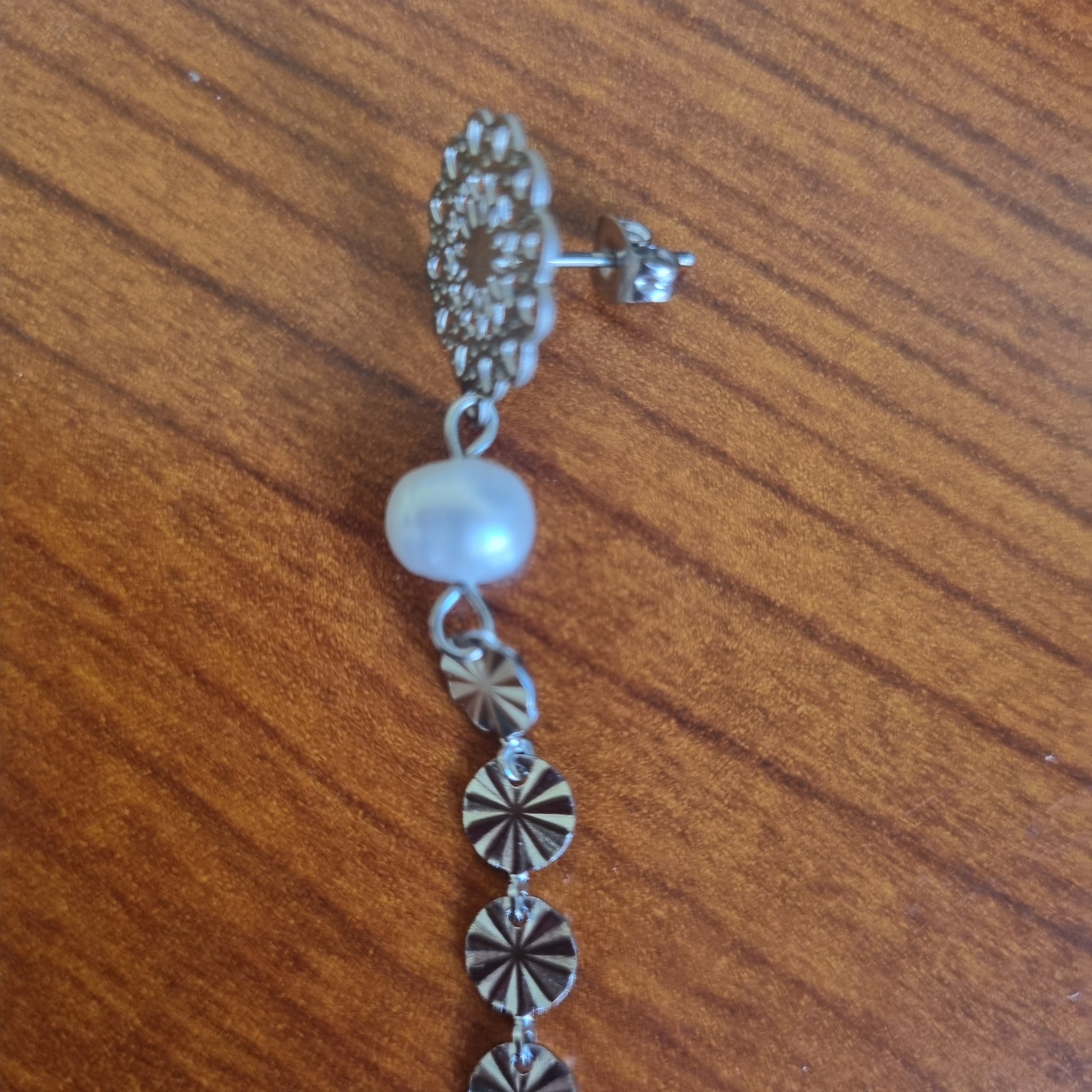 Orecchini “Luna d’Argento” – Eleganza Artigianale in acciaio inox con Perle Naturali