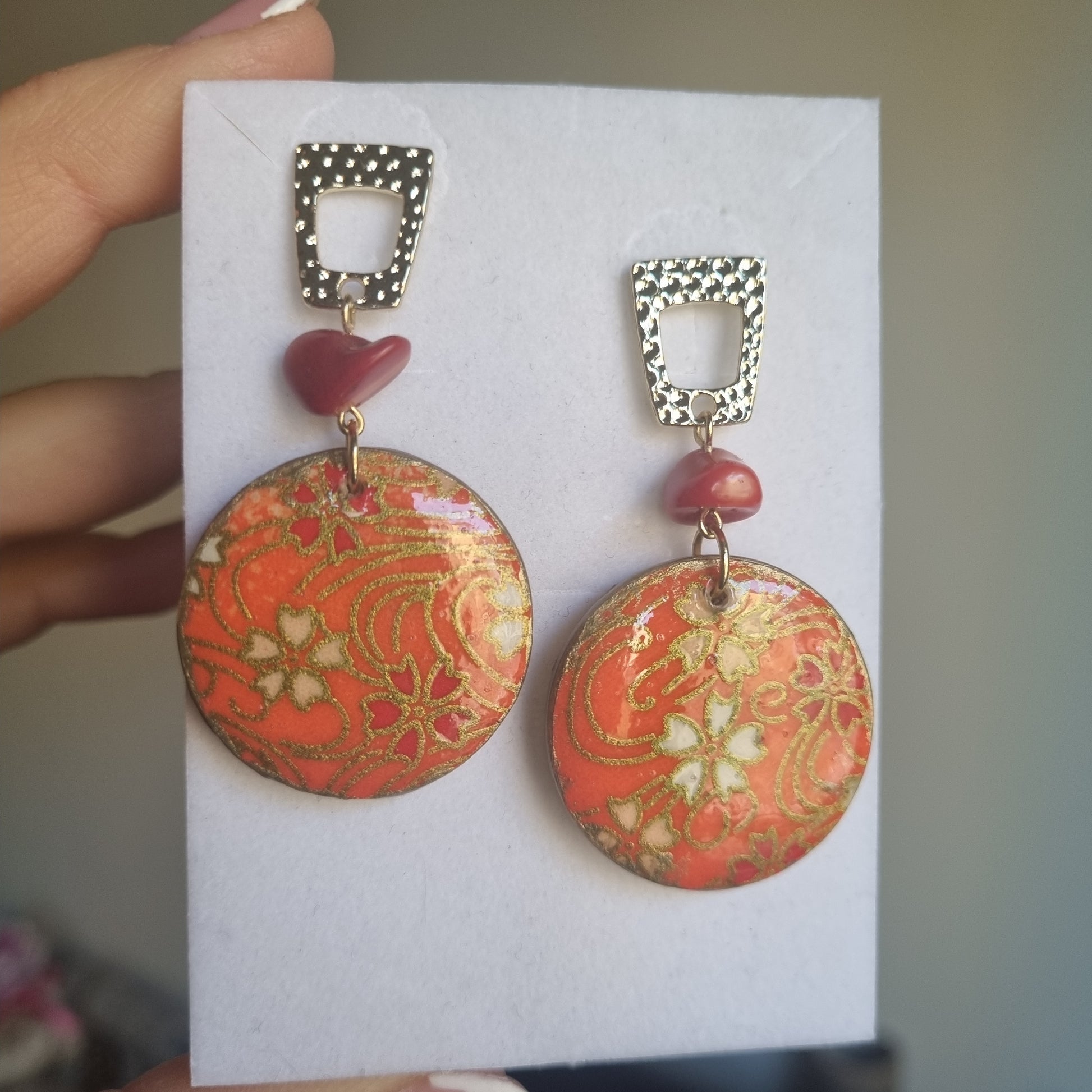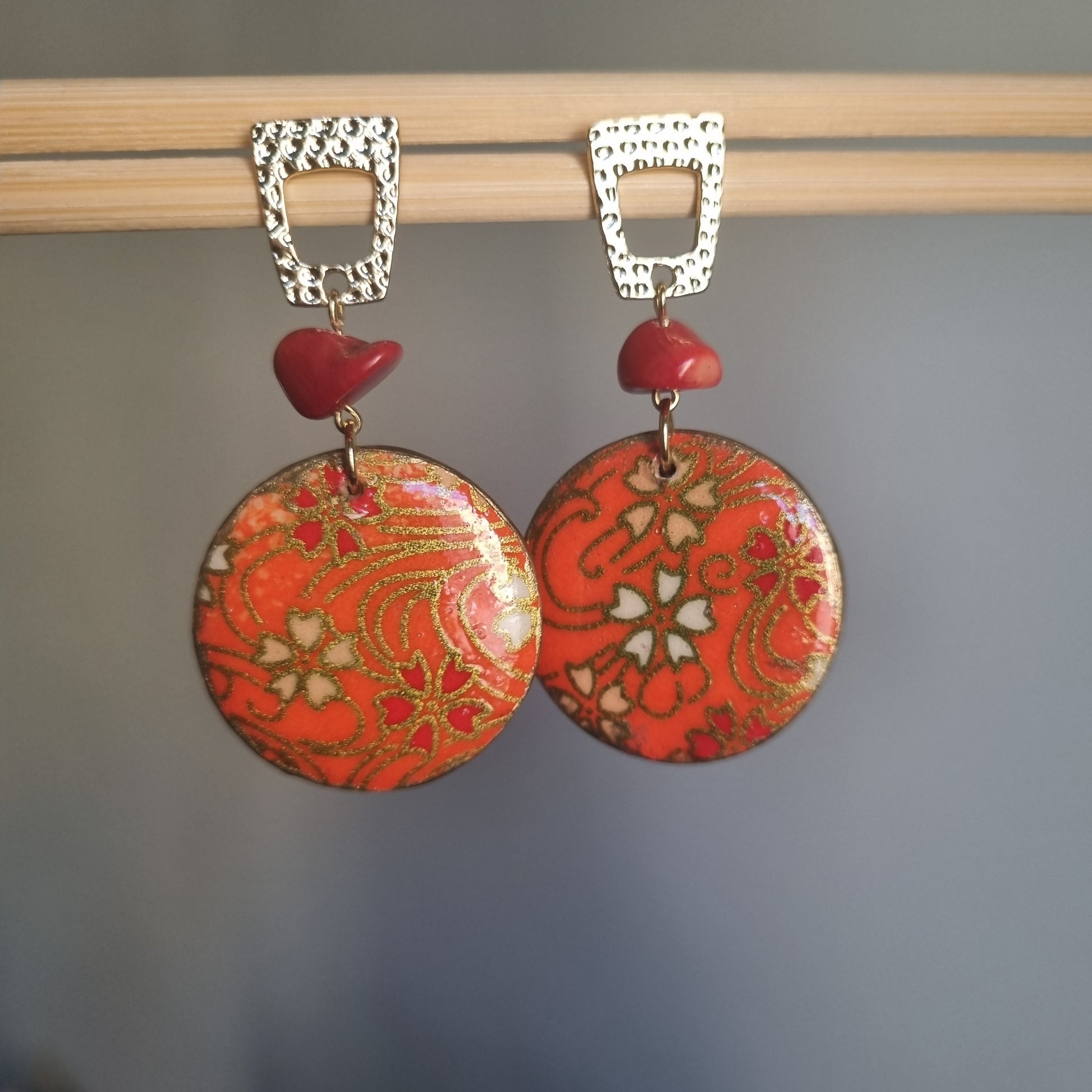 Questi orecchini artigianali sono perfetti per chi ama i gioielli d'autore che fanno la differenza. Il mix di rosso corallo e oro li rende incredibilmente versatili: